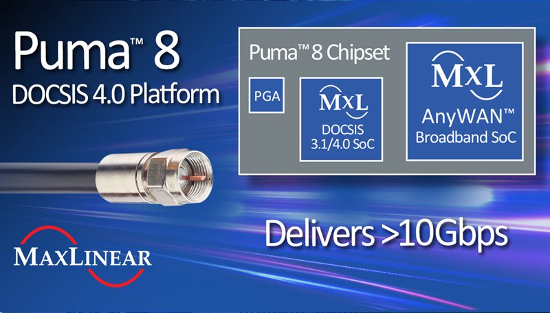MaxLinear’s Puma™ 8 DOCSIS® 4.0 ESD/FDD Achieves Greater than 10Gbps Throughput, Offering Cable Service Providers Maximum Network Upgrade Flexibility