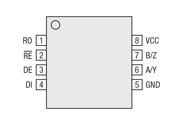 The DE and RE pins include hot swap circuitry to prevent false transitions on the bus during power up or live insertion and can enter a 1nA low current shutdown mode for extreme power savings.